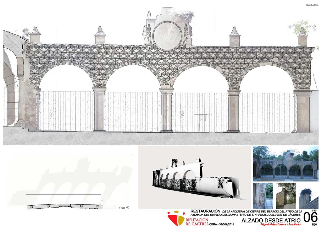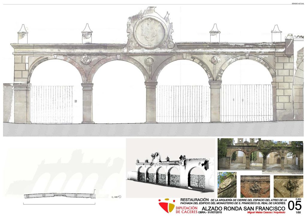 La intervención en este inmueble está encaminada a su protección, conservación y mejora, y ha consistido en la consolidación estructural de los elementos que componen la arcada; la eliminación de elementos disonantes y restauración de las lagunas producidas, restauración y conservación de los acabados históricos y, con todo ello, la puesta en valor de la edificación.