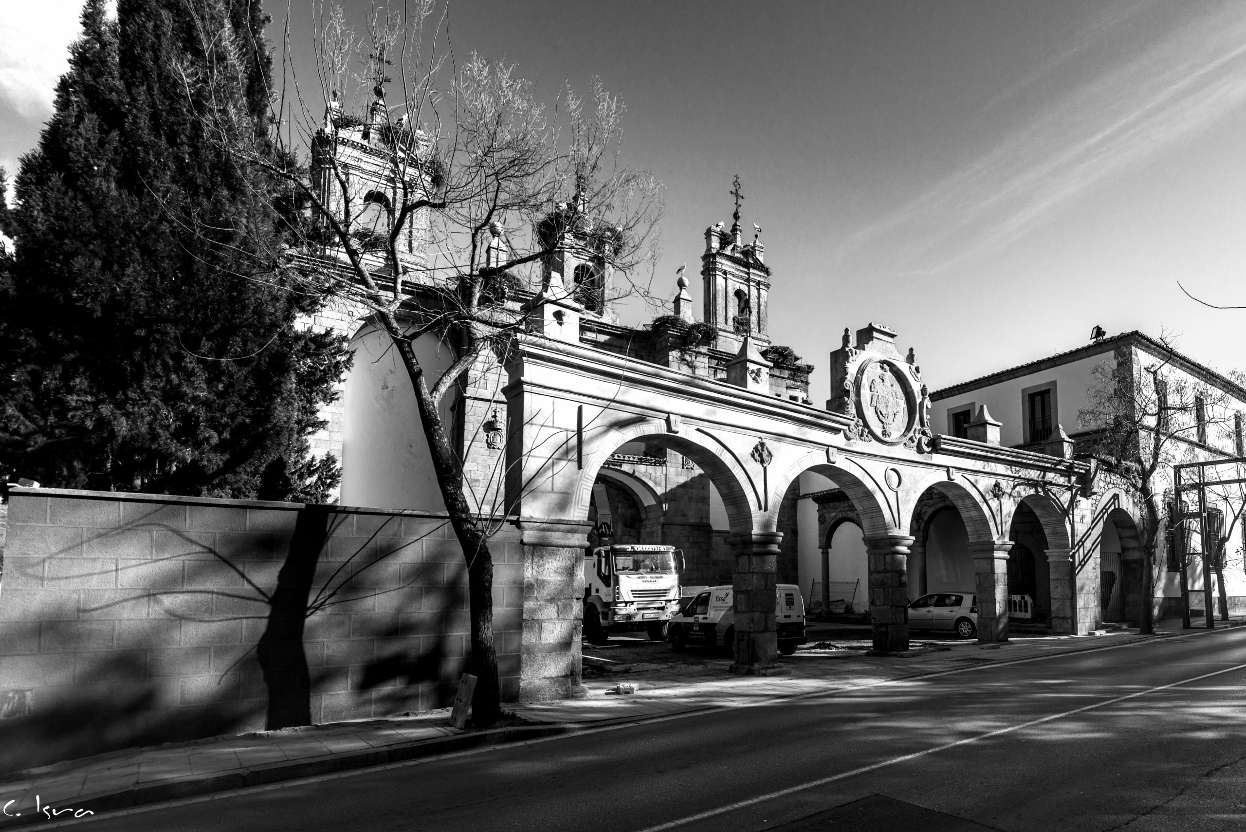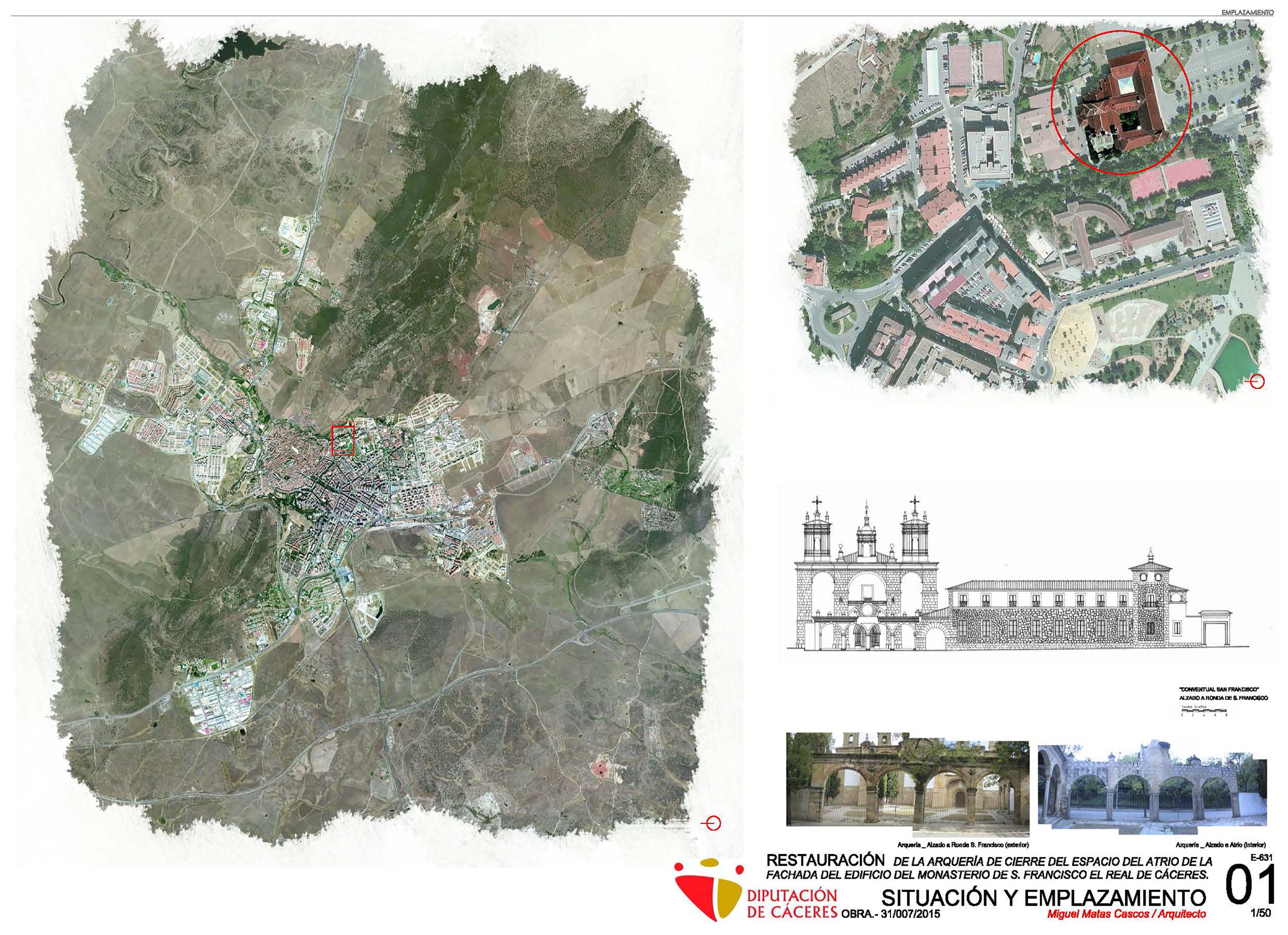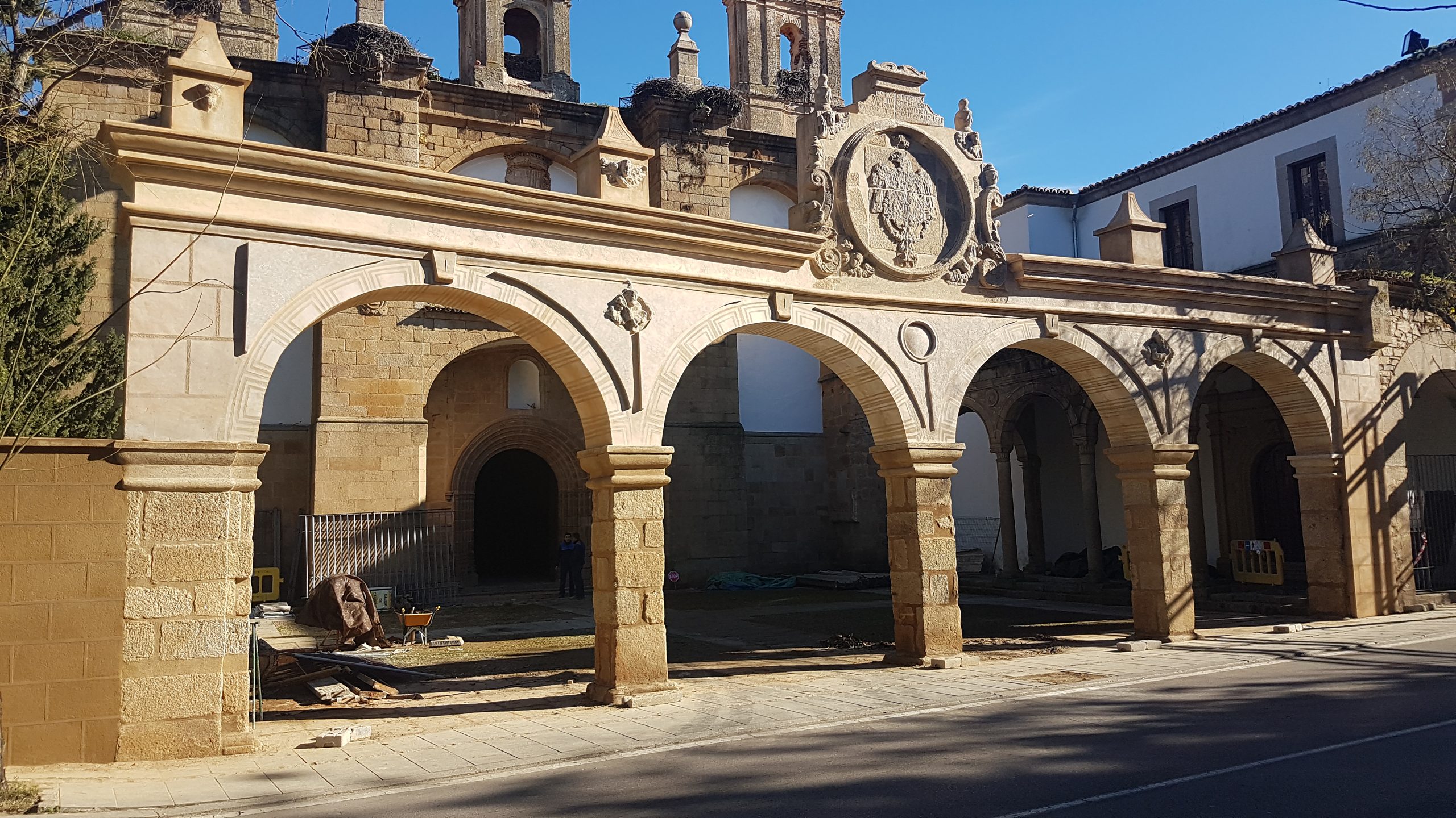 La arquería está situada en el Complejo Cultural San Francisco, en Cáceres, originalmente Monasterio de San Francisco el Real, edificación cuya propiedad ostenta la Excelentísima Diputación de Cáceres, y que fue declarado Bien de Interés Cultural en 1949.