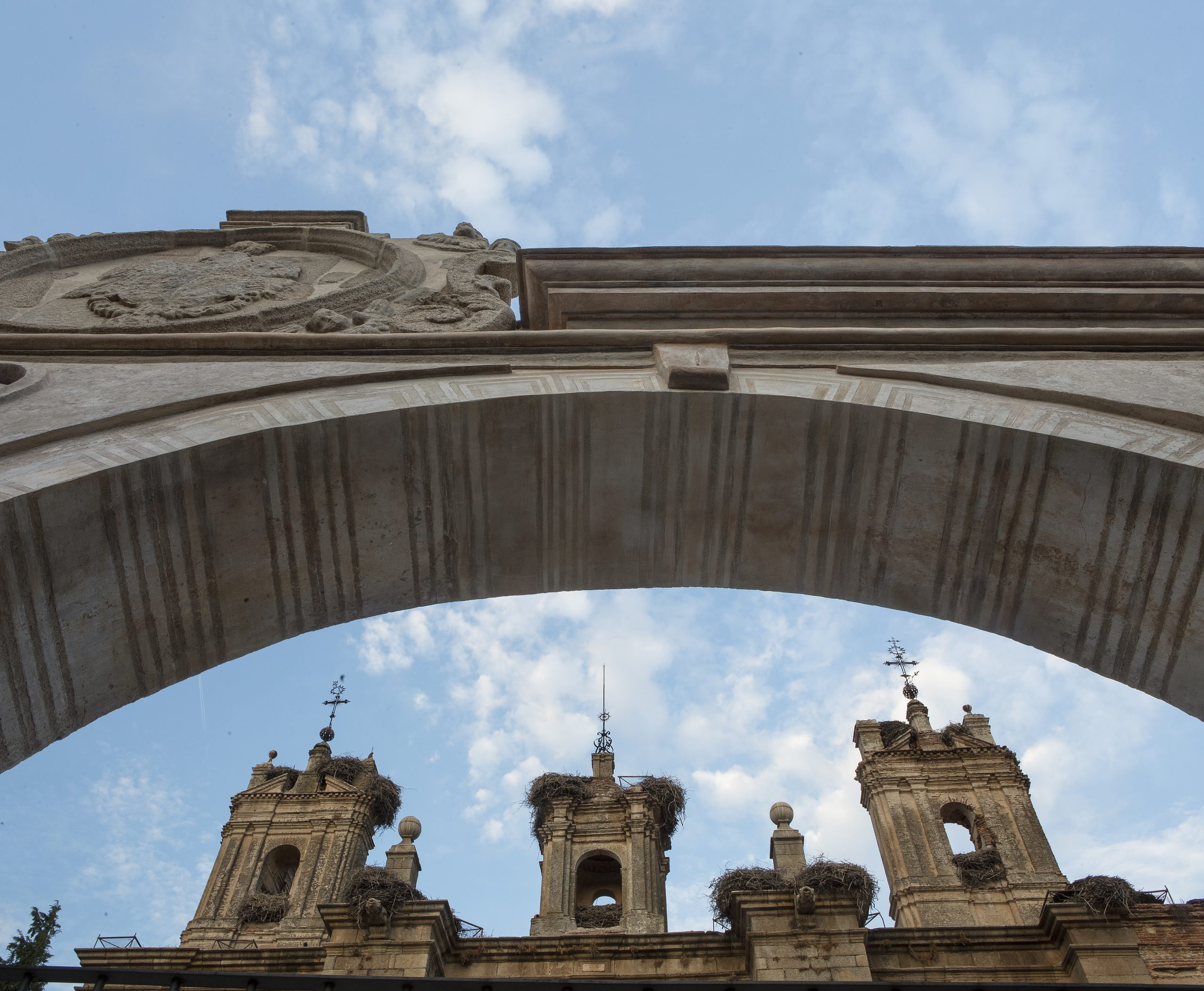 La arcada es el elemento que cierra y formaliza por el oeste el atrio de acceso a la Iglesia del Monasterio (ahora auditorio), tratándose por tanto de un entorno monumental que debe ser tenido en cuenta a la hora de proponer actuaciones sobre el mismo.