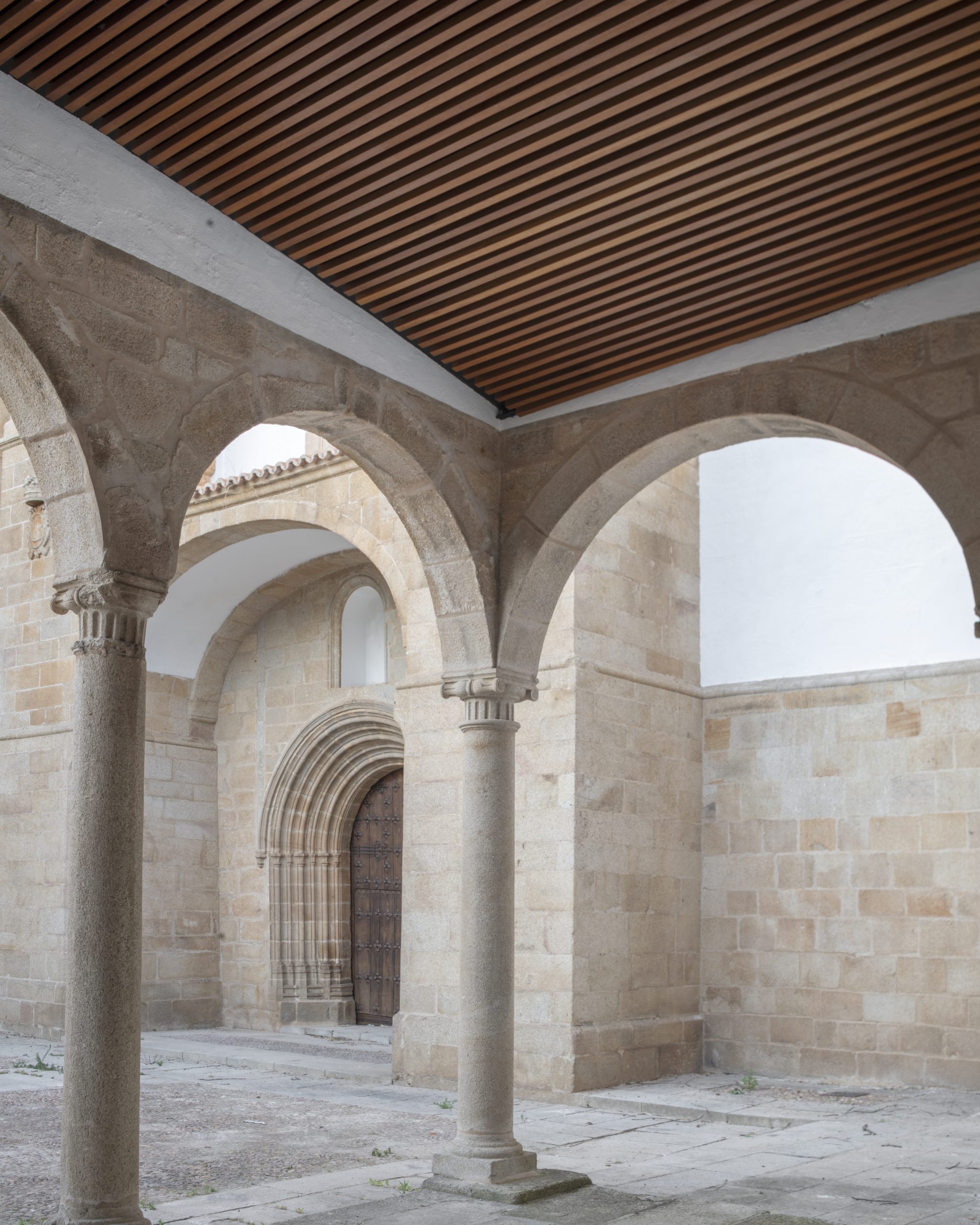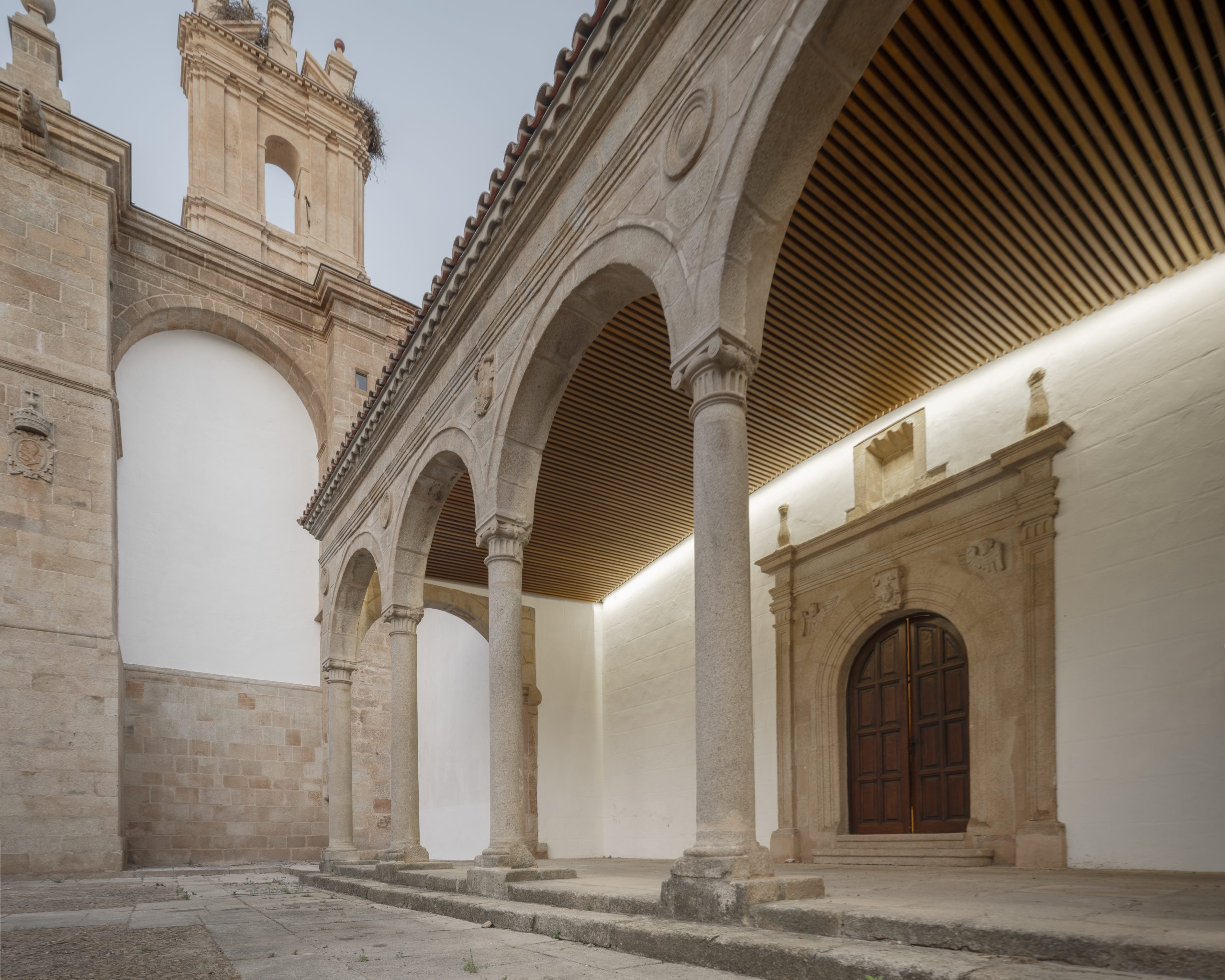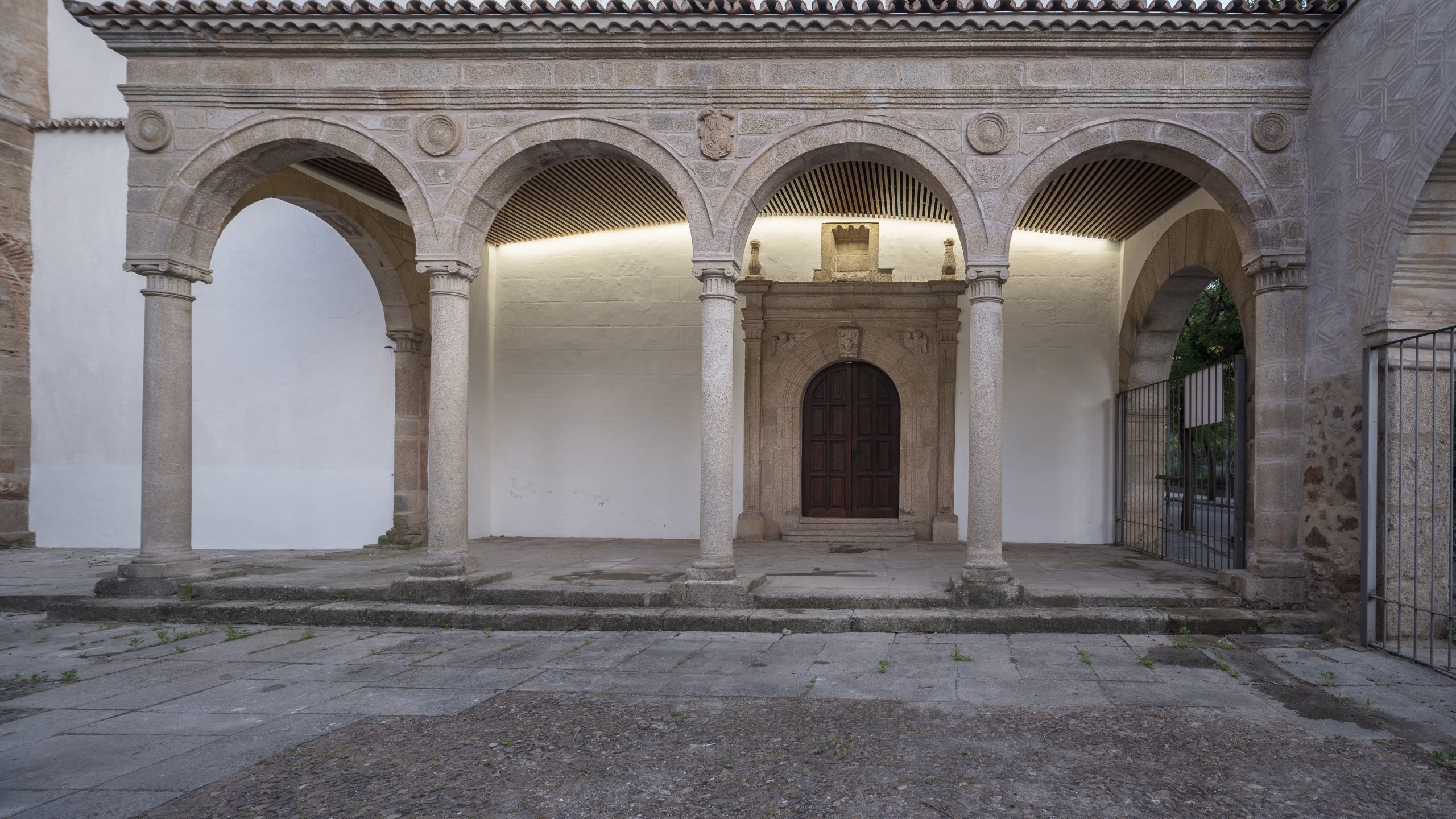 En esta zona del edificio se han realizado numerosas obras y la imagen que tenemos hoy del pórtico es el resultado de las obras de restructuración que se llevaron a cabo entre los años 70 y 80.
